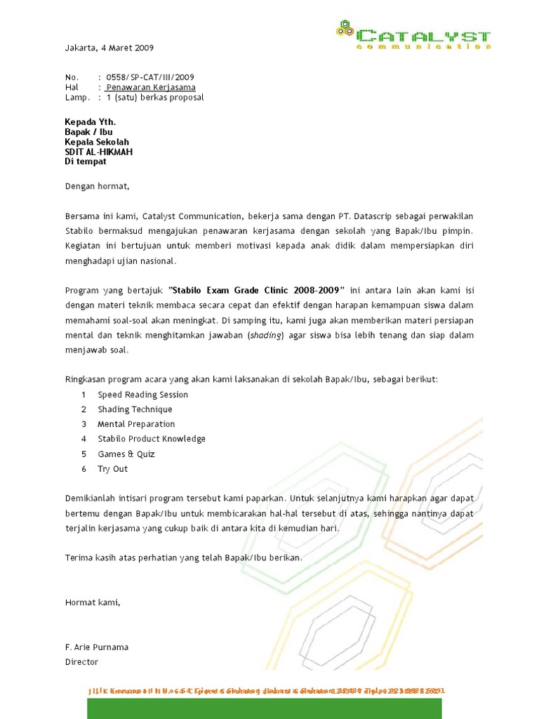 Dalam contoh surat penawaran kerjasama bahasa inggris, gawe cv telah memilihkan tema atau template yang terbaik untuk dijadikan inspirasi, ide ataupun acuan dalam penulisan surat anda. Contoh surat penawaran kerjasama ekspor impor dalam bahasa inggris. Disamping memiliki pengaruh yang baik untuk membuat jenis usaha kita dapat laris dan laku dipasaran. 3 contoh surat penawaran kerjasama barang elektronik yang benar. 3 contoh surat penawaran kerjasama barang elektronik yang benar.